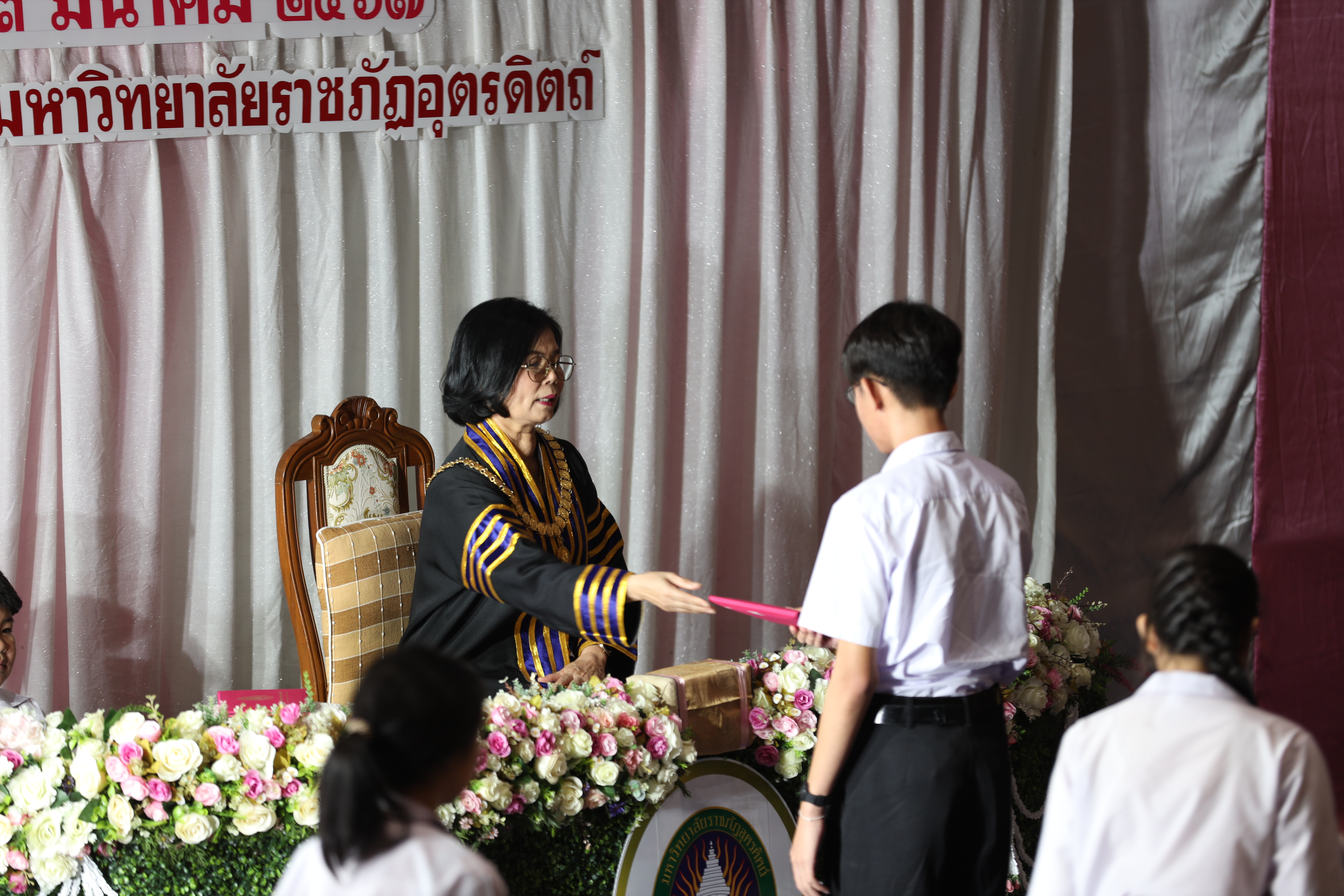 วันที่ 13 มีนาคม 2566 โรงเรียนสาธิตมหาวิทยาลัยราชภัฏอุตรดิตถ์ จัดพิธีมอบเกียรติบัตรให้แก่ นักเรียนที่สำเร็จการศึกษาประจำปีการศึกษา 2566 ในระดับชั้นอนุบาลปีที่ 3 ประถมศึกษาปีที่ 6 มัธยมศึกษาปีที่ 3 ดับชั้นมัธยมศึกษาปีที่ 6 โดยได้รับเกียรติจาก รศ.ดร.สุภาวิณี สัตยาภรณ์ อธิการบดี เป็นประธานในการมอบเกียรติบัตรให้แก่ผู้สำเร็จการศึกษา โดยโรงเรียนสาธิตมหาวิทยาลัยราชภัฏอุตรดิตถ์ ได้เปิดดำเนินการสอนนักเรียนระดับชั้นบริบาลจนถึง มัธยมศึกษาปีที่ 6 โดยเปิดรับนักเรียนที่มีอายุครบ 2 ขวบ เข้าเรียนตั้งแต่ปีพุทธศักราช 2528 เป็นต้นมาและปัจจุบันได้ขยายการเรียนการสอนจนถึงระดับมัธยมศึกษาตอนปลาย การเปิดสอนของโรงเรียนสาธิตฯ มีวัตถุประสงค์หลักเพื่อพัฒนามาตรฐานในด้าน การเรียนการสอนที่เป็นแบบอย่าง เป็นแหล่งทดลองนวัตกรรมทางการศึกษา โดยมุ่งเน้นให้นักเรียนเป็นเด็กดี เด็กเก่งอยู่ในสังคมอย่างมีความสุข พร้อมที่จะพัฒนาตนเองให้มีความก้าวทันต่อการเปลี่ยนแปลงของสังคมโลกอย่างรวดเร็ว ซึ่งในวันนี้เป็นนักเรียนชั้น อนุบาลปีที่ 3 ประถมศึกษาปีที่ 6 รุ่นที่ 31 ชั้นมัธยมศึกษาปีที่ 3 รุ่นที่ 19 และระดับชั้นมัธยมศึกษาปีที่ 6 รุ่นที่ 2 ณ ห้องประชุม FMS 102 คณะวิทยาการจัดการ มหาวิทยาลัยราชภัฏอุตรดิตถ์ ภาพ/ข่าว PR URU