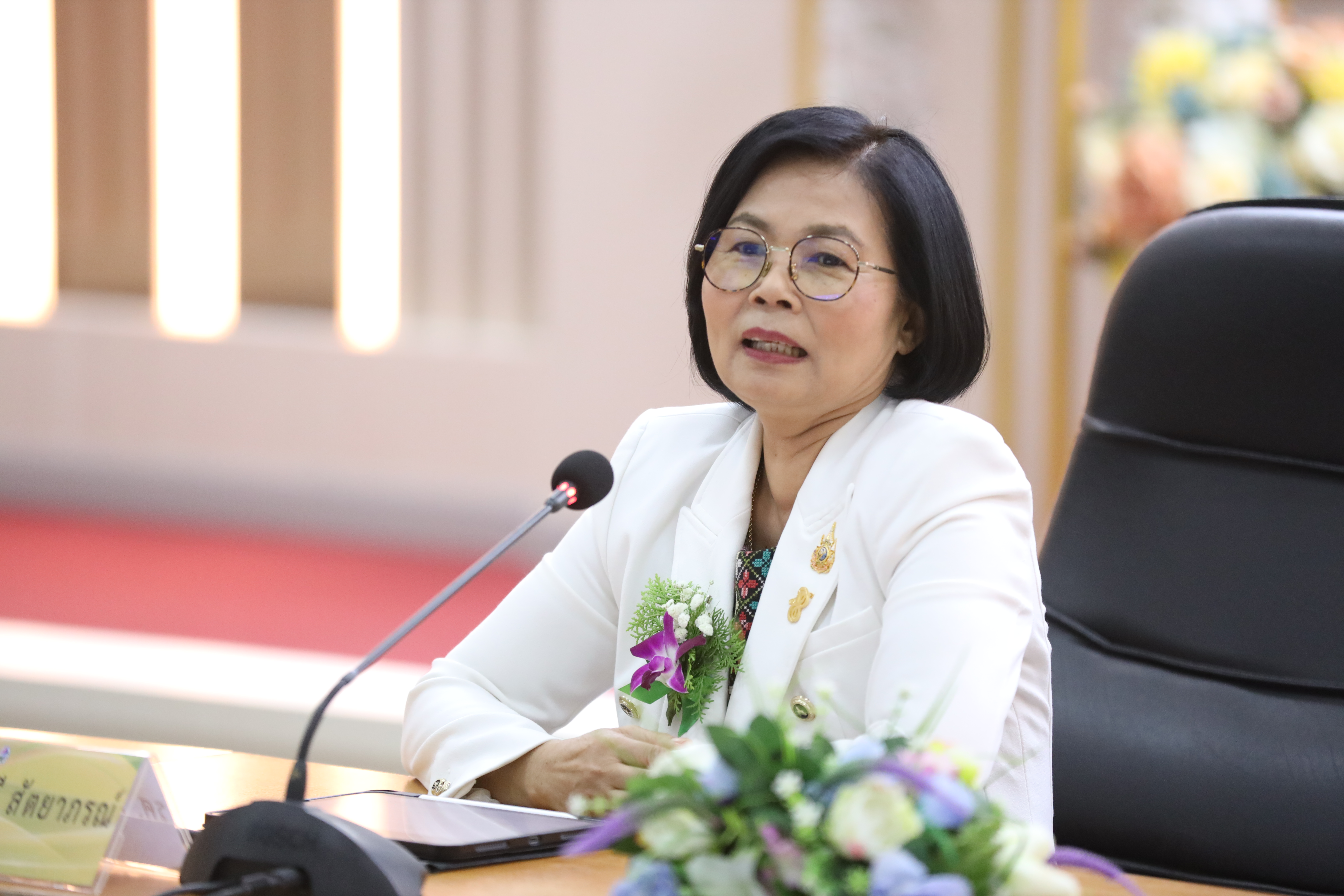 รองศาสตราจารย์ ดร.สุภาวิณี สัตยาภรณ์ อธิการบดี มหาวิทยาลัยราชภัฏอุตรดิตถ์ กล่าวต้อนรับ ผู้บริหารบุคลากรจากมหาวิทยาลัยเกษตรศาสตร์ กำแพงแสน นำโดย พลโท ธิติชัย  ปรีชา ผู้อำนวยการสถาบันพอเพียงกลาง ดร.ชัยณรงค์ ศรีรักษ์ ผู้อำนวยการสถาบันนวัตกรรมพอเพียง และคณะ ในการหารือแนวทางการจัดทำข้อตกลงความร่วมมือในการจัดทำโครงการการพัฒนานวัตกร เจน Z ตามรอยวิถีพอเพียงเพื่อสู่พัฒนาความยั่งยืนปี 2568-2572 ด้วยสถาบันความพอเพียง ภายใต้มูลนิธิศิษย์นายร้อยตามรอยพระบาททูลกระหม่อมอาจารย์ในพระราชูปถัมภ์สมเด็จพระเทพรัตนราชสุดาฯสยามบรมราชกุมารี มหาวิทยาเกษตรศาสตร์ กำแพงแสน และ มหาวิทยาลัยราชภัฏอุตรดิตถ์ มีวัตถุประสงค์จัดทำโครงการการพัฒนานวัตกร เจน Z ตามรอยวิถีพอเพียงเพื่อพัฒนาสู่ความยั่งยืน ปี 2568-2572 ร่วมกับสถาบันอุดมศึกษาประจำพื้นที่ลุ่มน้ำ และสถาบันการศึกษา